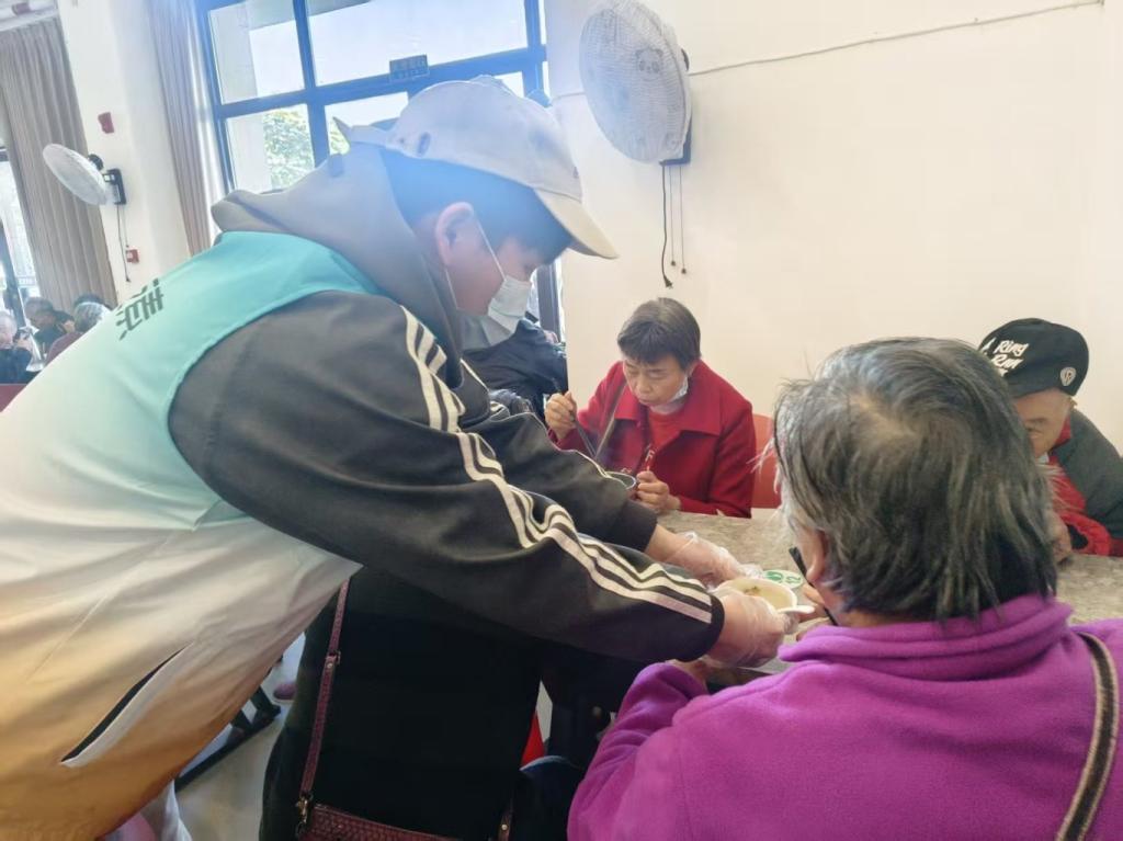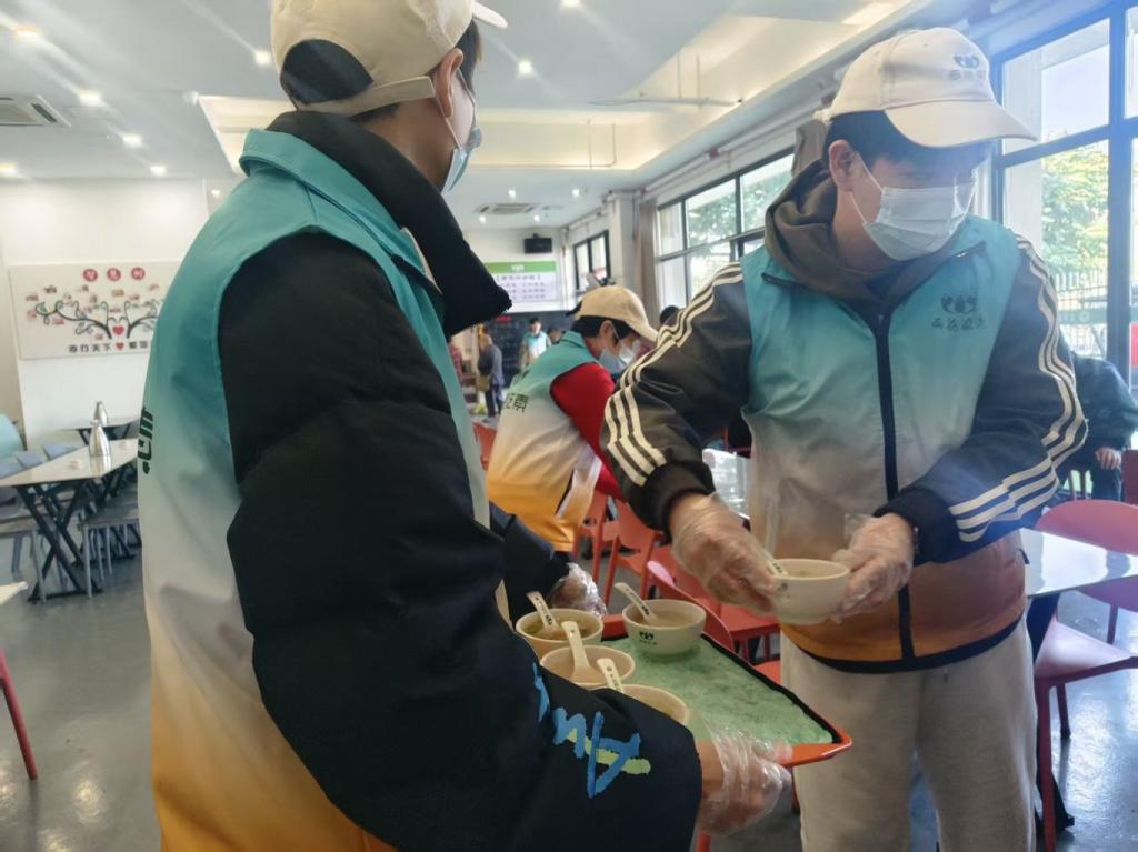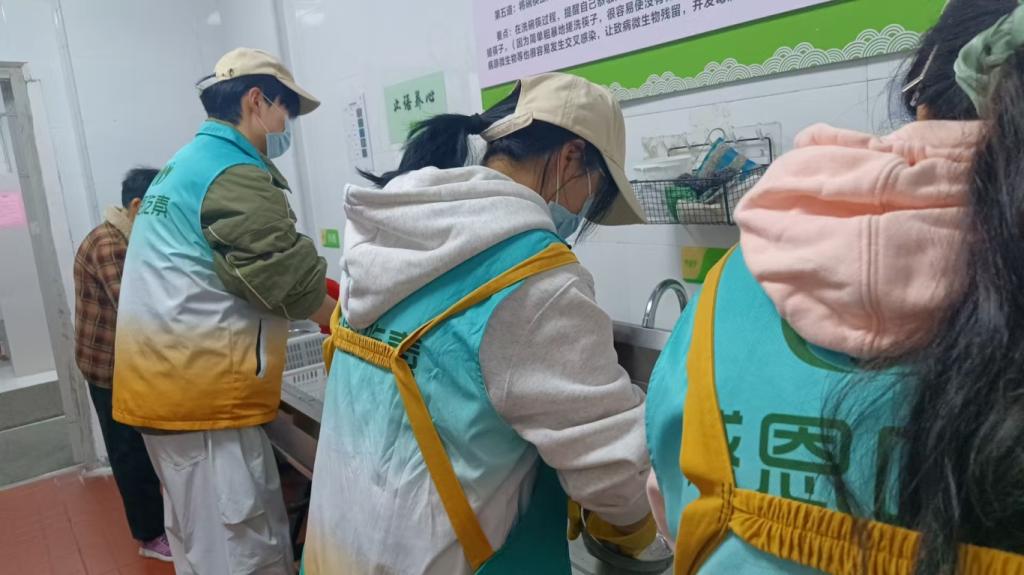 就餐期间,志愿者协助分发餐食、维护现场秩序;用餐结束后,主动承担餐具清洗与场地清洁工作,直至将餐厅整理完毕,才圆满完成本次志愿服务。