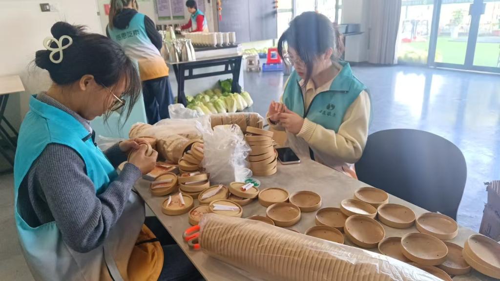 志愿者开展餐前筹备