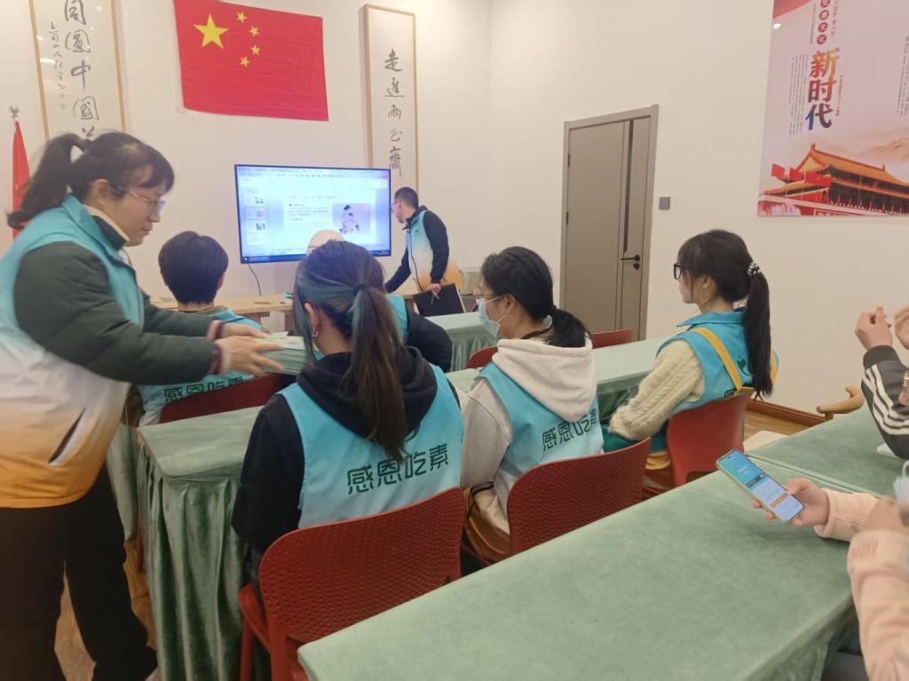 志愿服务队成员准时抵达现场,身着义工服装迅速明确分工,有序整理桌椅、规范摆放餐具,扎实做好餐前各项筹备工作。老人们陆续到场后,队员们耐心引导至休息区,陪同观看传统文化影片,悉心交流、贴心陪护,现场氛围温馨融洽。一位老人由衷称赞青年志愿者细心周到、热忱服务。一上午的志愿活动中,队员们高效完成签到引导、观影陪伴等服务工作,在躬身实践中深刻体会关爱长者、奉献社会的责任与意义。